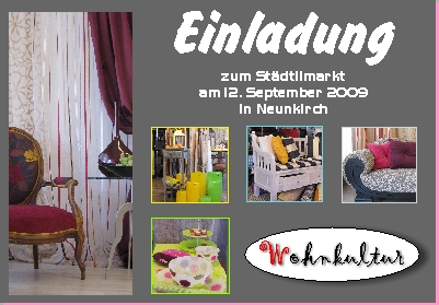 01.September 2008 Wie immer findet der alljährliche Städtlimarkt bei uns in Neunkirch statt. Besuchen Sie mich doch an diesem Markt. Wie immer habe ich viele neue und schöne Wohnaccessoires