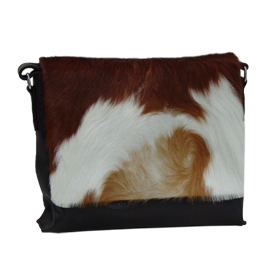 Tasche 'Manu 2', 27 x 22 x 7 cm, Fell braun-weiss